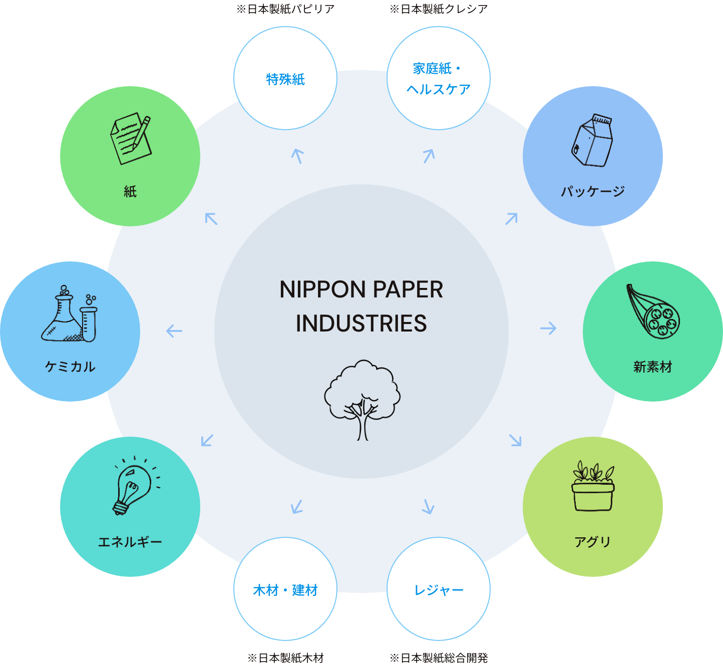 日本製紙は、木という資源を余すことなく活用する事業展開をしています。環境に優しい木という資源を活用することで、持続可能な社会の構築を実現するとともに、世界の人々の豊かな暮らしと文化の発展に貢献しています。