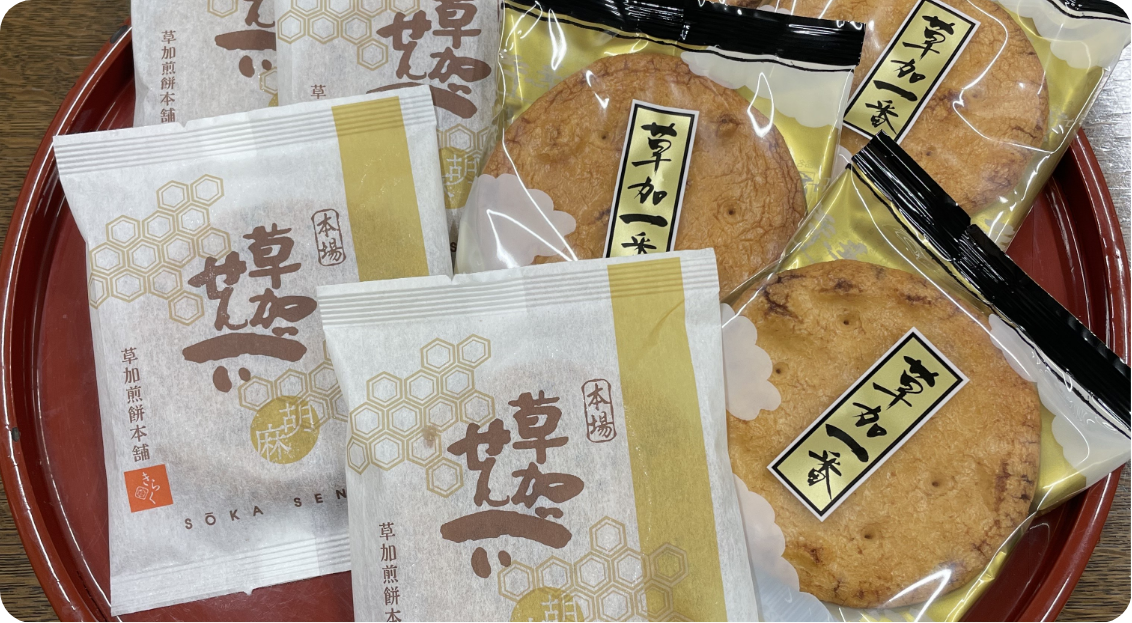 草加といえば、やはり「草加せんべい」は外せません!お土産の定番というだけでなく、お店によって味や焼き加減が違うので、食べ比べも楽しいです。醤油の香ばしさがしっかりした王道タイプから、少し変わり種の味まで幅広く、つい買ってしまいます。また、草加せんべいを自分で焼く体験ができるお店もあり、焼きたてならではの香ばしさや食感を楽しめるのも魅力です。草加に来たらぜひ、いろいろなお店を巡って“あなたのお気に入りの一枚”を見つけてみてください!