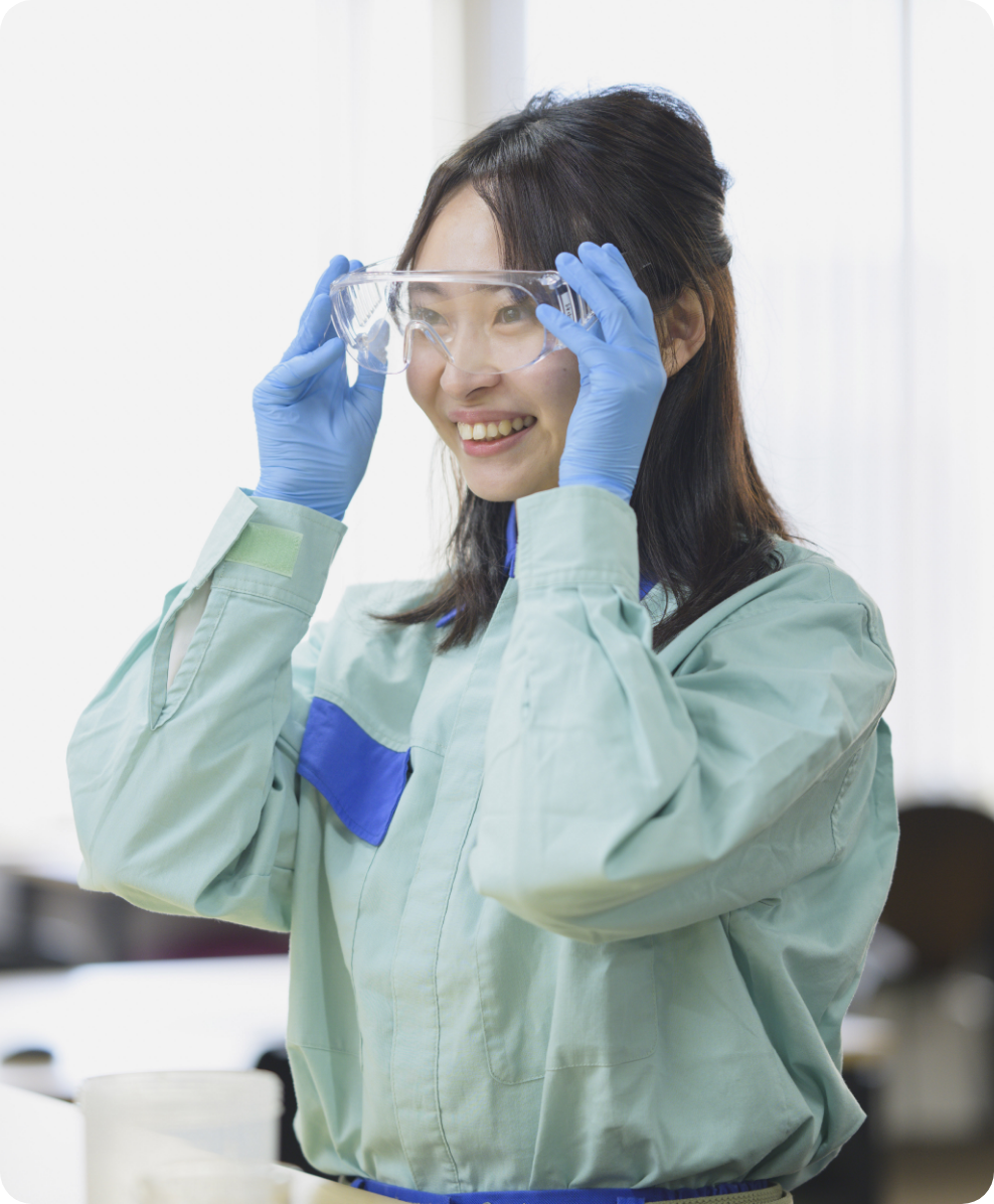 私が所属する富士革新素材研究所は、良い意味で“おしゃべりな人”が多く、社員同士が気軽に声を掛け合う雰囲気があります。入社する前は、研究職というと黙々と一人で仕事を進めるというイメージを持っていましたが、まったくそうではありませんでした。日常的に意見交換が活発に行われています。私は、過度に静かな環境よりも、適度な会話があるほうが集中力を発揮できるタイプです。コミュニケーションにあふれた文化のなかで、自分のテーマに取り組むことができる、そんな環境が自分に合っていると感じます。