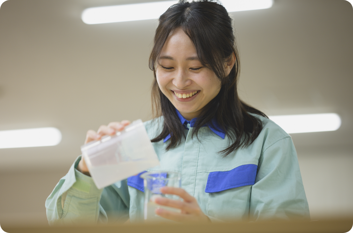 CM化CNFは新素材ですから、参考になる前例やノウハウがありません。配属後初めて任されたテーマとして、CM化CNFを食品の新しい分野に応用する基礎研究を担当したことがありますが、何もかもが手探り。保存状況によって風味が損なわれる仕組みや、適切な評価方法など、分からないことばかりでした。上司や先輩に相談しながら試行錯誤を重ねて、なんとかCM化CNFの効果を示す客観的なデータを得ることができました。研究の成果が実際の提案につながり、お客さまの関心を集められた時は、それまでにない達成感を味わうことができました。