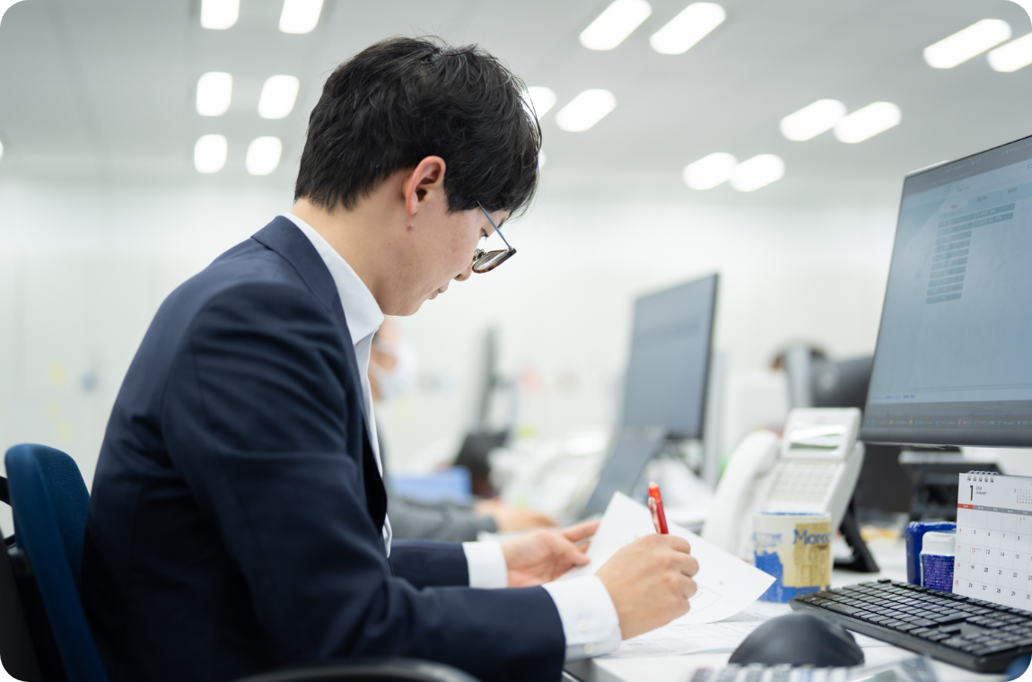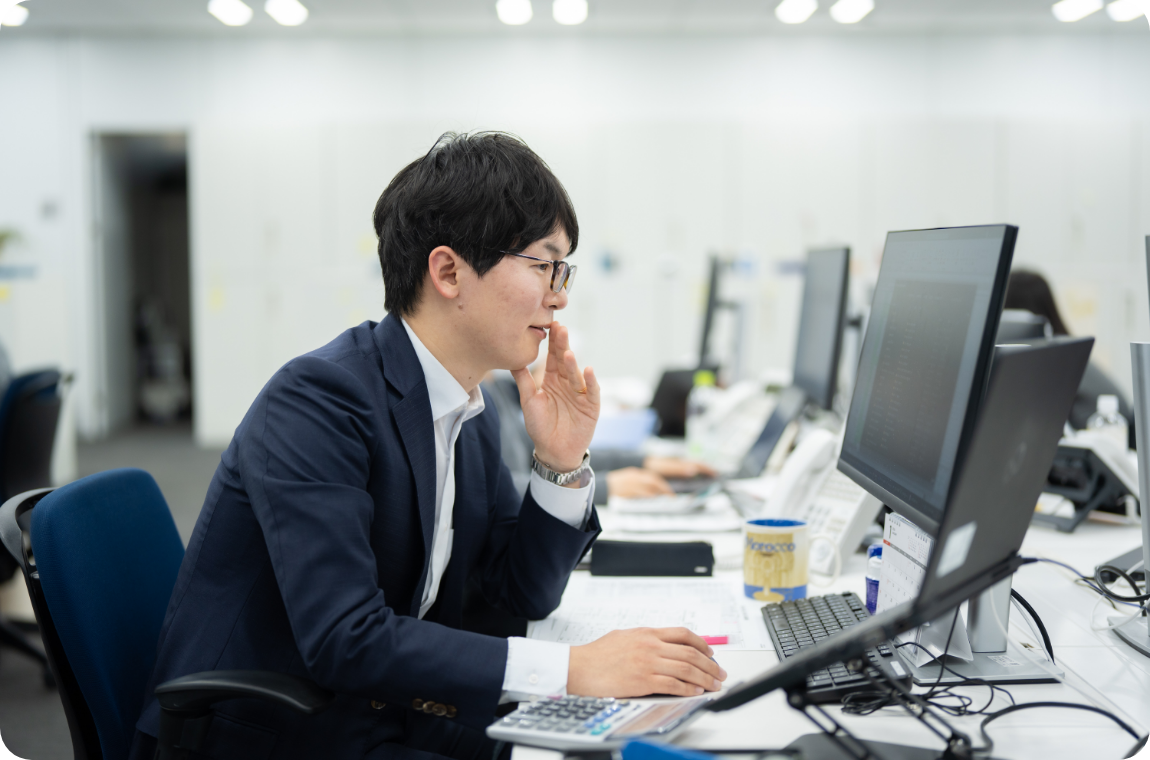経理の仕事は大きく分けて、「財務会計」と「管理会計」の二つがあります。「財務会計」とは、決算書などを通じて会社の経営状況を社外に正しく伝える仕事です。一方、「管理会計」は、工場や営業部門ごとの数字を分析し、社内の意思決定に役立てることを目的としています。私は現在、「管理会計」を担当するグループに所属しています。月次で担当する工場や営業部署の損益、操業状況、販売動向のヒアリング・分析に取り組んでいます。また、会社全体の損益分析を取りまとめて、執行会議(経営会議)で使用される資料を作成する業務にも携わっています。