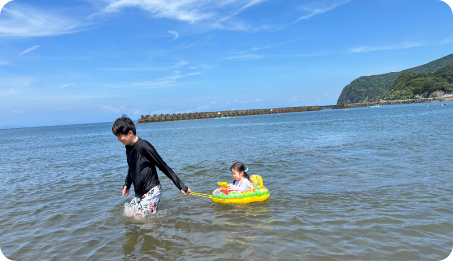 休日は、ほとんどの時間を家族と過ごしています。普段は近所の公園で遊ぶことが多いのですが、時には旅行へも出かけます。夏なら海の近くへ、冬なら雪景色を求めて。季節を感じられる場所に行って、楽しい思い出をつくっています。また家にいる時は、子どもの好きなアニメやテレビ番組を一緒に見ています。