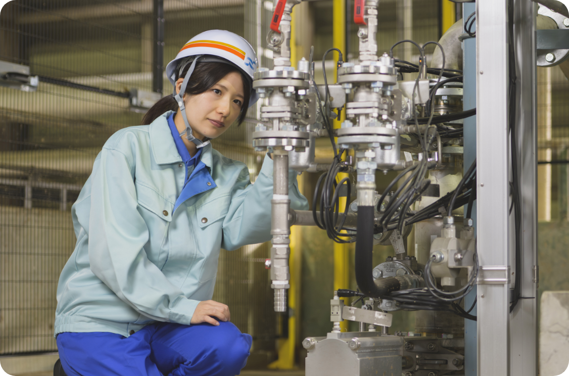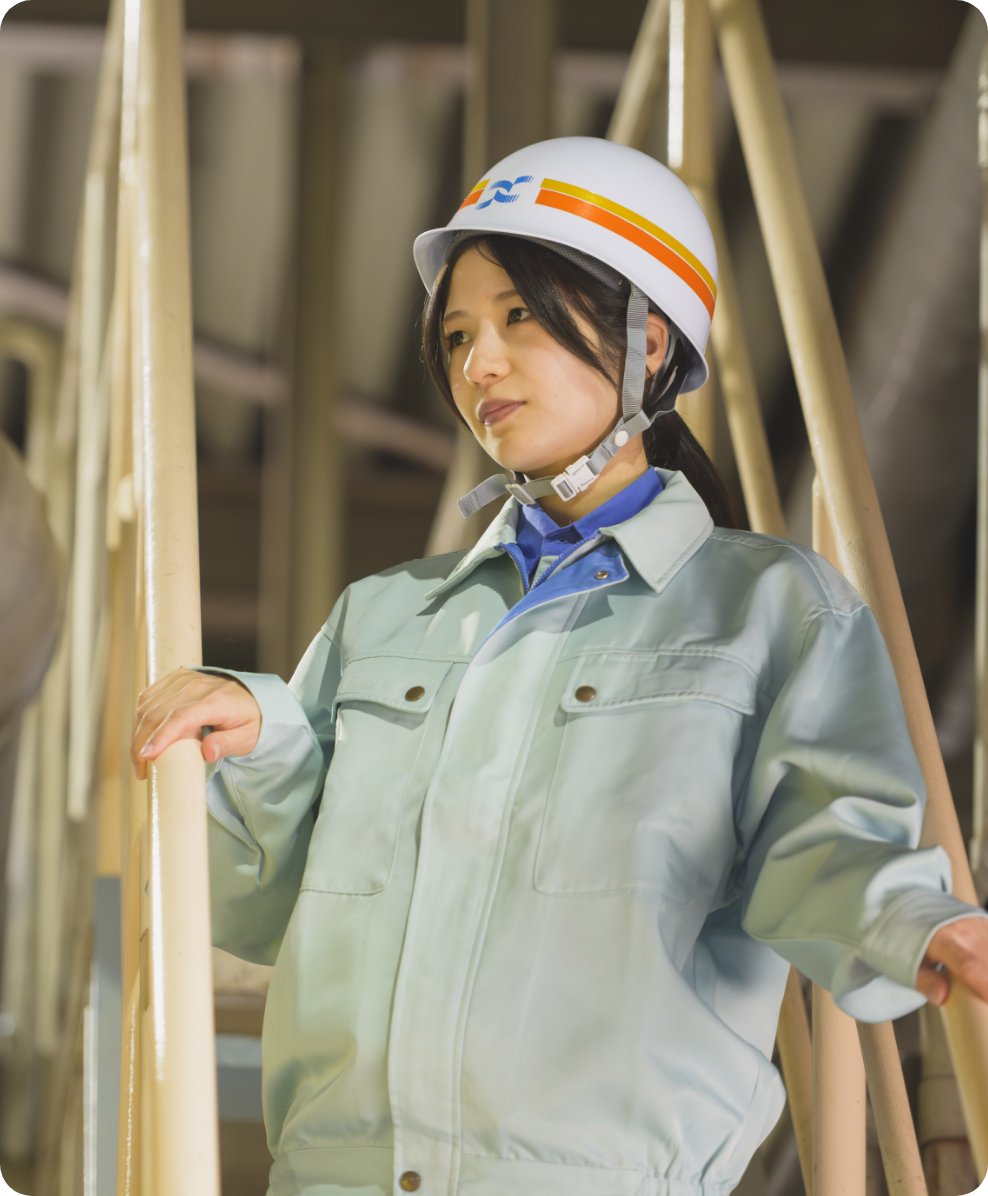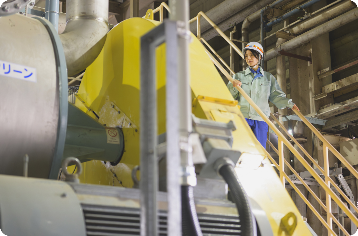 私は、段ボールや白板紙(お菓子や日用品の箱などに使われる紙)をつくる工場で、紙の原料となるパルプを製造する原質部門に所属しています。私の役割は、「高品質な紙を、より安全に、よりコストを抑えて、そして環境への負荷をできるだけ抑えてつくるにはどうすればいいか」を考え、それを実現していくことです。具体的には、品質向上や生産性向上に向けた操業条件の検討、オペレーターが安全に作業するための設備改善、使用する電力や蒸気を減らして省エネルギーにつながる新設備の導入検討などに取り組んでいます。