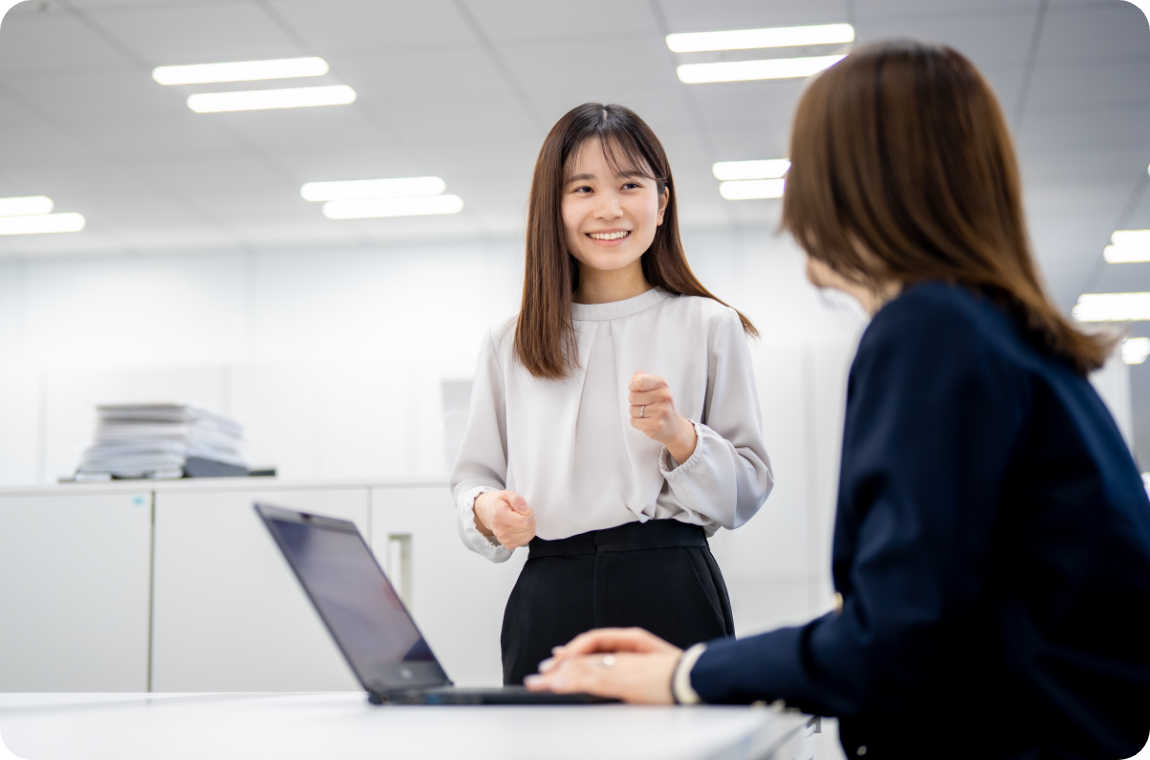 日本製紙の良いところは、さまざまな人との出会いがある点です。日本製紙は北海道から九州まで全国各地に工場を構えており、経歴も専門分野も異なる社員がそれぞれの強みを生かし適材適所に働いています。困ったときには、部署や役職、拠点を越えて親身に相談に乗ってくれる上司や同僚が多く、とても心強く、安心して働くことができます。また、地域に根ざした会社であることも魅力の一つです。長年にわたって取引のあるサプライヤーの方々と話をしていると、会社への信頼の厚さを実感し、誇らしい気持ちになります。