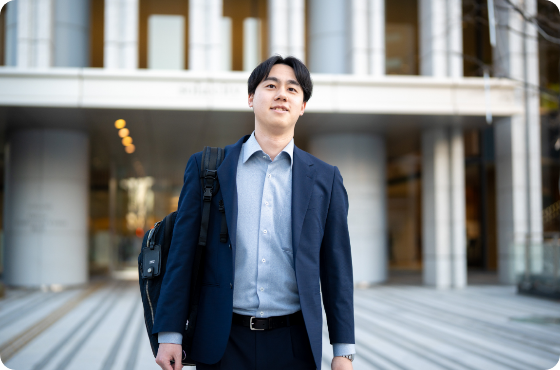 就職活動では、自分が携わった商品が形となって世の中、社会に貢献しているメーカーを中心に企業研究を進めました。なかでも、就職活動を進めるうちに、人々の生活や社会を根底から支えている素材メーカーに魅力を感じるようになりました。さまざまな会社の説明会に参加するなかで、日本製紙の説明会に参加した際に木質資源を活かし、基盤事業である紙事業に留まらず、生活関連、エネルギー、新素材など多岐にわたる事業分野を国内外で展開していることを知りました。また、少数精鋭採用で若手のうちからさまざまなことに挑戦できる環境があり、説明会で感じた社風や社員の雰囲気が「自分に合っているな」と感じたことも入社を後押ししたポイントになりました。