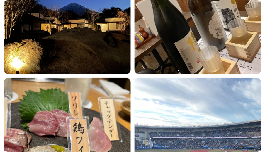 ネットで見つけた気になるお店を訪れて、美味しい食事やお酒を味わうのが至福の時間です。仕事を通じてさまざまな方々と会食する機会が増えたからか、最近はこれまで親しみのなかった日本酒やワインなどの良さがわかるようになってきました。その他自然豊かな場所のグランピング、野球観戦や温泉・サウナ巡りなど、リフレッシュして過ごしています。