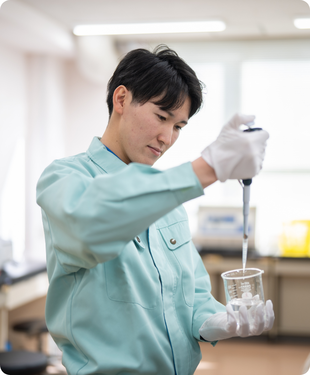 ゼロから検討と実験を重ね、「これならお客さまの要望に応えられる」と確信できた技術や製品が、量産へと動き出す。そのプロセスを構想段階から最後まで主導できることに、研究職ならではのやりがいを感じています。一方で、すべてが順調に進むわけではありません。量産を目前にした段階で、突発的な事情により原料の変更を余儀なくされたこともありました。限られた時間の中で代替原料を探し、性能を維持できる配合を一から見直すのは決して簡単ではありませんでしたが、試行錯誤を重ねて課題を乗り越え、自分が関わった製品が世の中に届けられたときの達成感は、何ものにも代えがたいものです。
